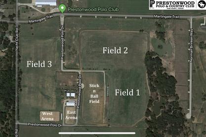 Prestonwood is located north of Dallas, between Frisco and Denton in the town of Oak Point. Our facility includes 3 full size bermuda grass fields with 1200 sf covered pavilion overlooking polo Field 1